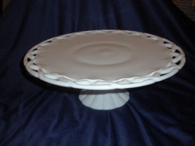 EAPG Open Lace Pedestal Milk Glass Cake Stand