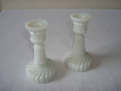 Vintage Miniature Milk Glass Candle Sticks