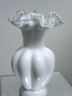 VINTAGE FENTON SILVERCREST MILK GLASS RIBBED VASE