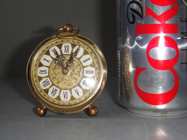 ANTIQUE VINTAGE BRASS ENAMEL ALARM CLOCK GERMAN