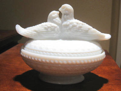 Westmoreland Milk Glass Love Birds Covered Candy Bowl