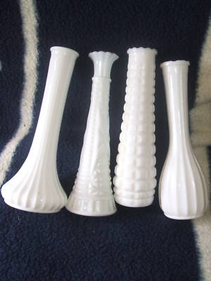 Title (ebay affiliate link): MILK GLASS VASE LOT of 4 STEM BUD BRODY HOOSIER