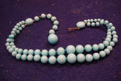 ESTATE 1930'S BLUE MILK GLASS MULTI STRAND NECKLACE