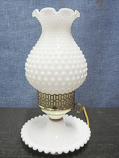 Vintage Antique Milk Glass Hobnail Table Lamp 11"