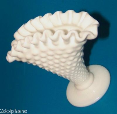 ~FENTON ARTGLASS~ HOBNAIL MILK GLASS~RUFFLED FAN VASE!~