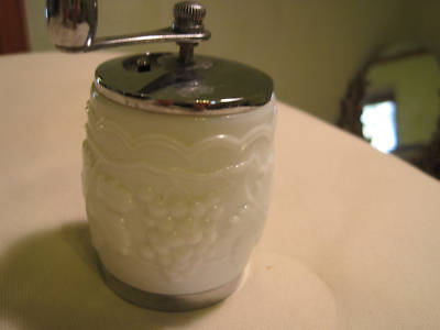 Indiana Vintage MILK GLASS pepper grinder!! Great shape