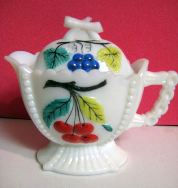 Westmorland Milk Glass Decorated Lidded Creamer Milk Ju