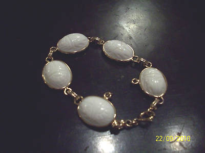 VINTAGE MILK GLASS SCARAB EGYPTIAN BRACELET