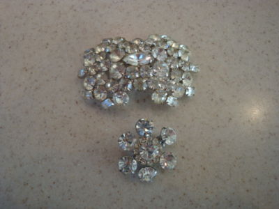 2 VINTAGE ANTIQUE RHINESTONE PINS COSTUME JEWELRY