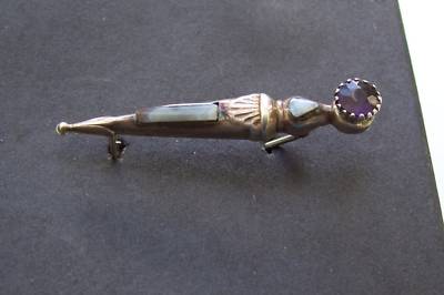 ANTIQUE STERLING SILVER Amethyst/Agate Dirk BROOCH