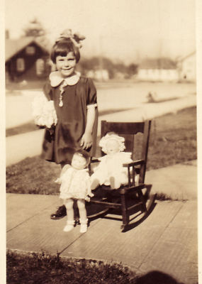 Title (ebay affiliate link): Antique Photo: Lovely Young Girl w Dolls & Tiny Rocker