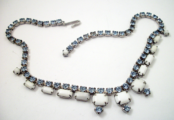 Vintage Milk Glass & Rhinestone Weiss Necklace