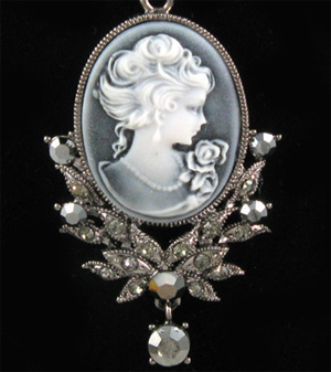 Title (ebay affiliate link): NEW ANTIQUE STYLE GRAY CRYSTAL CAMEO PENDANT NECKLACE
