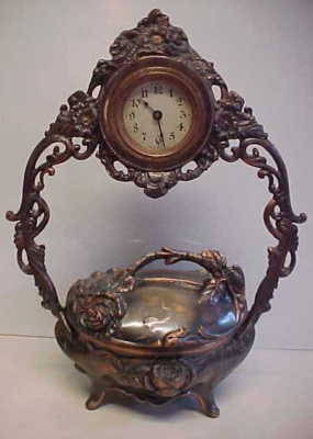 Antique Art Nouveau Copper Tone Vanity Clock Hinged