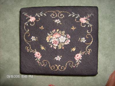 ANTIQUE NEEDLEPOINT FOOTSTOOL CARVED FRAME