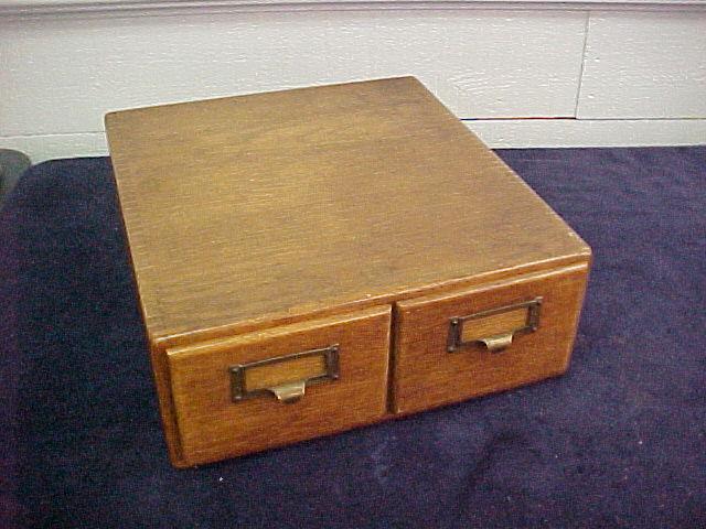 ANTIQUE OAK 2 DRAWER LIBRARY CARD CABINET