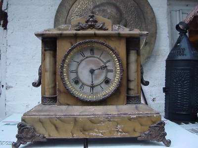 ANTIQUE WATERBURY EIGHT DAY MANTLE CLOCK WORKING OLD