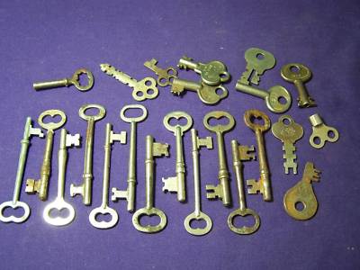 23 Antique Skelton, Padlock, Clock, and Misc. Keys