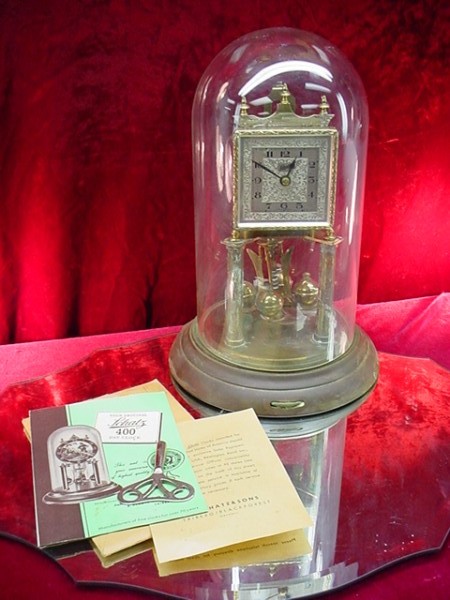 ANTIQUE SCHATZ 400 DAY ANNIVERSARY CLOCK w/ Dome & Book