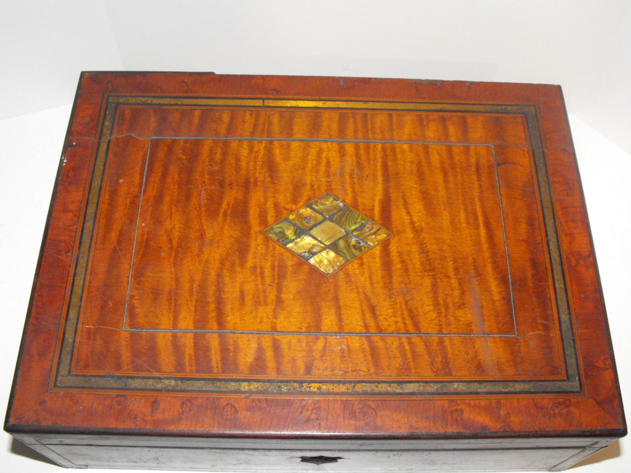 Title (ebay affiliate link): ~1800s SECRETARY LAP DESK w. MOP / ABALONE Inlay tlc~