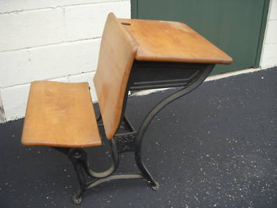 Antique School Desk- Wood and Iron