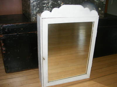 Vtg Small BATHROOM Wall MEDICINE CABINET white mirror
