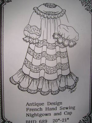 Antique French Nightgown & Cap Pattern 20- 21" Doll
