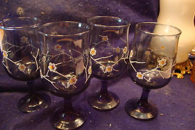 Title (ebay affiliate link): GLASS SET OF 4 6 INCH PAINTED FLOWERED BLUE GOBLETS