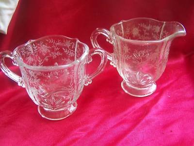 Title (ebay affiliate link): Fostoria "Chintz" Depression Glass Cream & Sugar Bowl