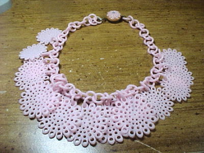 Antique Plastic Bib Necklace Pink Lace Very Sweet