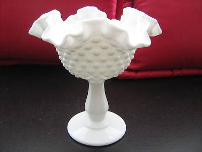 VINTAGE FENTON White Milk Glass Hobnail Compote EXCLLNT