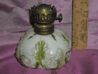 Mini Oil Lamp Base Painted Milk Glass
