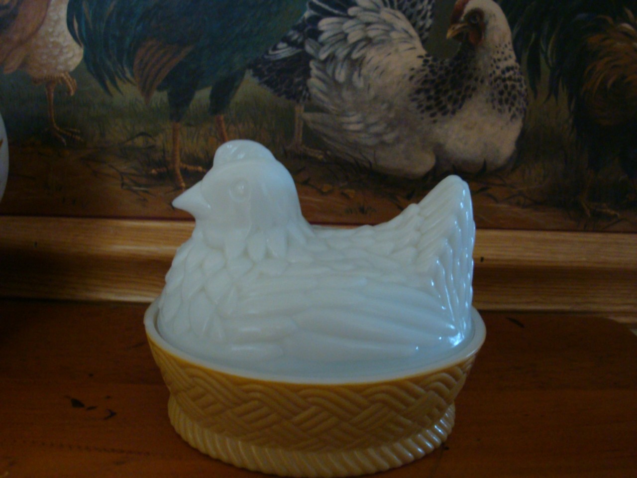 AVON MILK GLASS "CHICKEN" COVERD DISH