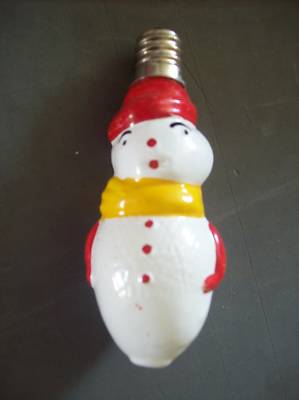 Vintage Xmas figural milk glass light bulb snowman