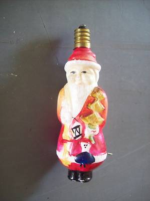 Vintage Xmas figural milk glass light bulb Santa