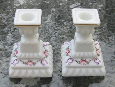 Westmoreland Milk Glass Painted Candlesticks Roses Bows