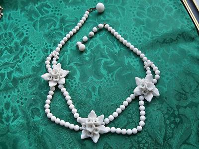 Vintage White Milk Glass Flower Necklace