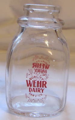 Wehr Dairy (Indiana) Half Pint Milk Bottle~Clear w-Red