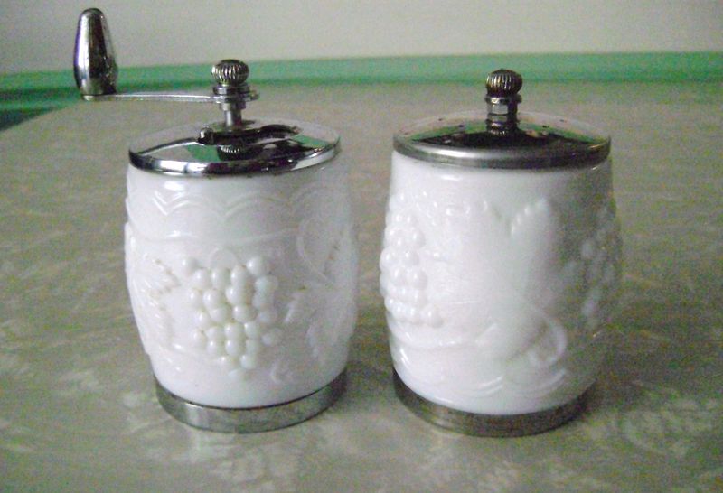 Imperial Grape White Milk Glass Salt Shaker Pepper Mill