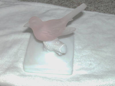 Westmoreland Pink Frosted Bird on Milk Glass Perch EX!!