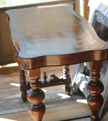 ANTIQUE LEATHER TOP SOFA HALL FOYER TABLE