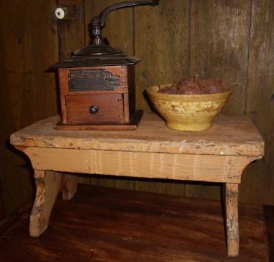early antique primitive wood step stool bench old paint