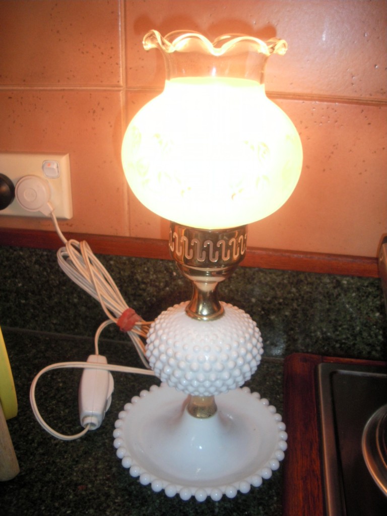 vintage milk glass hobnail electric hurricane lantern