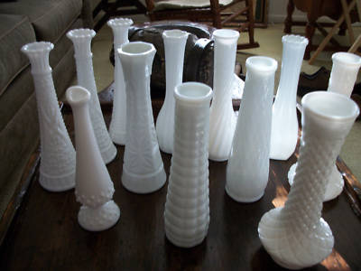 12 milk glass bud vases