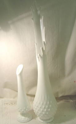 2 Fenton White Milk Glass Hobnail Vases - Bud & Swung