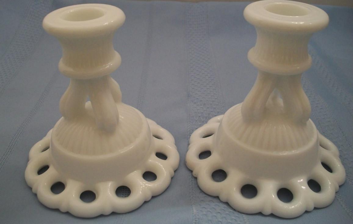Vintage Westmoreland 2 Candlestick Holders Milk Glass