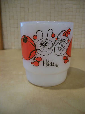 Fire King Lady Bug Mug Hildi Milk Glass