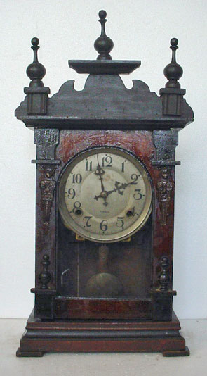 ANTIQUE 3 FINIAL CLEAR PANEL BRASS DECO MANTLE CLOCK