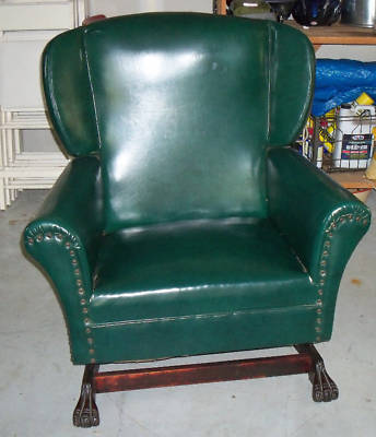 Title (ebay affiliate link): Art Deco Green Vinyl Wingback Rocking Chair Vintage