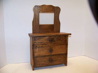 ANTIQUE MINI DOLL OAK DRESSER WITH CLEAR MIRROR